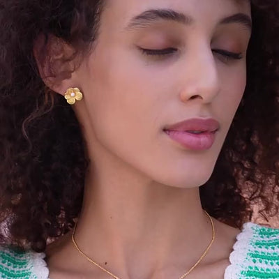 Sanft geformt wie Blüten, die vom Morgensonnenschein geküsst wurden – diese Petal Pearl Ohrstecker bringen eine verspielte, aber dennoch elegante Note in Ihren Alltag. Im Zentrum jedes goldenen Blütenblatts ruht eine schimmernde Süßwasserperle – zart, natürlich und mühelos strahlend.